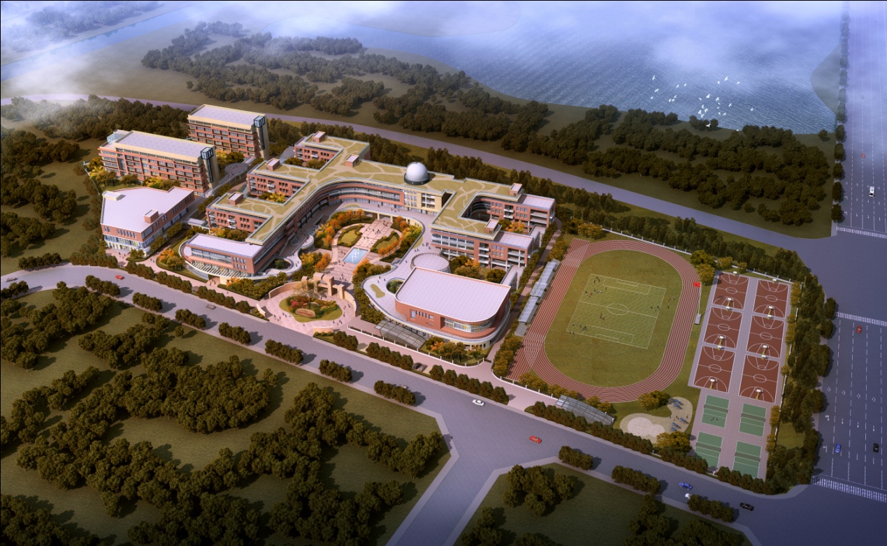 项目规划72班(含世界部12班),方案在校学生人数3600人,教职工343人。修建包含4幢教学楼、2幢综合楼、风雨操场、1幢艺术楼、4幢学生宿舍、1幢教师值勤楼、1个教职工与学生食堂、门卫、看台和室外走廊等一共14幢修建,地下修建面积包含校园地下停车库、社会公共地下停车库和非机动车库。